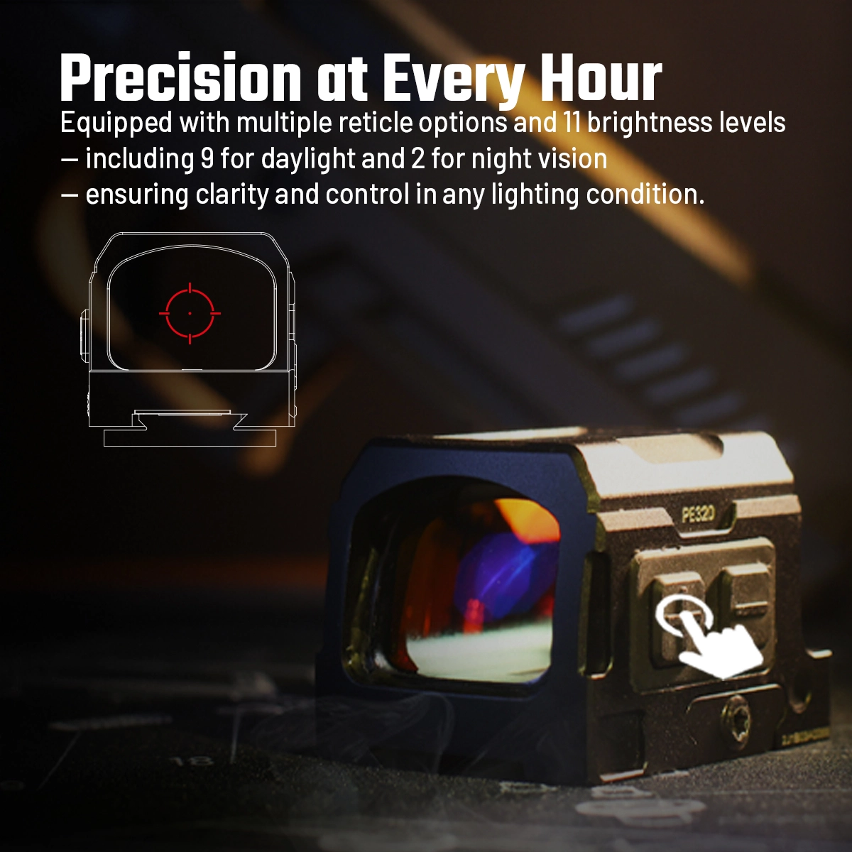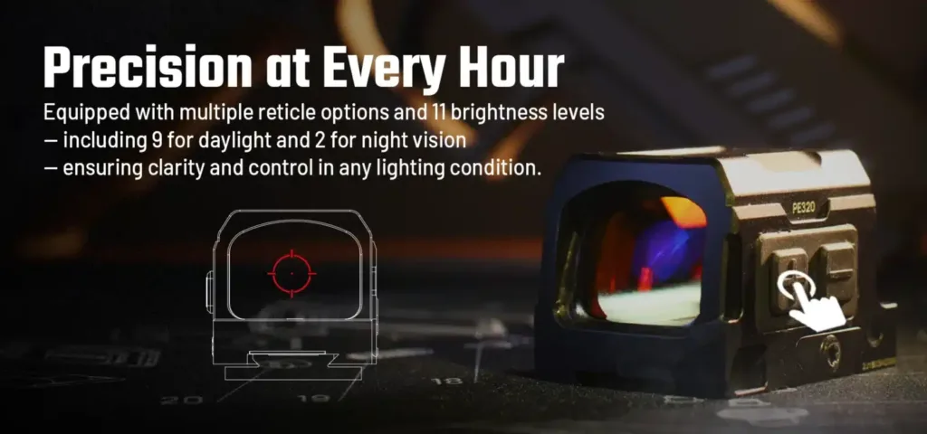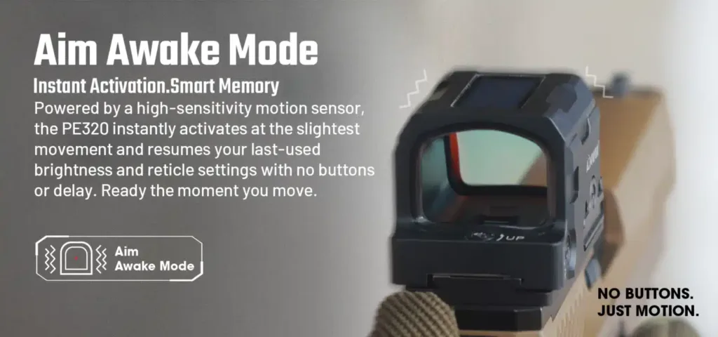 Díky 9 nastavením jasu pro denní světlo, 2 režimům nočního vidění a systému automatického probuzení Aim Awake™ zůstane váš zrak ostrý za jakéhokoli osvětlení a okamžitě se aktivuje na poslední nastavení bez ztráty pohybu.